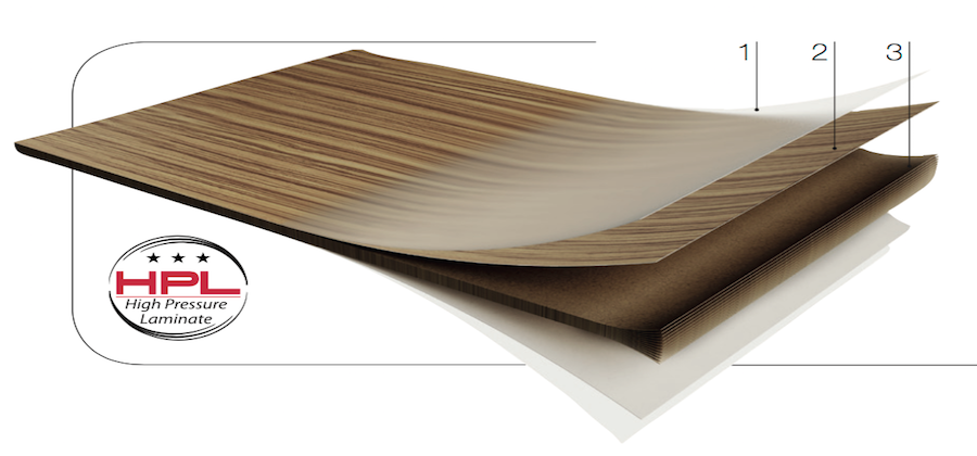Kompakt Laminat, reçineye batırılmış ve kurutulmuş Kraft kağıdı tabakalarından yapılmaktadır.